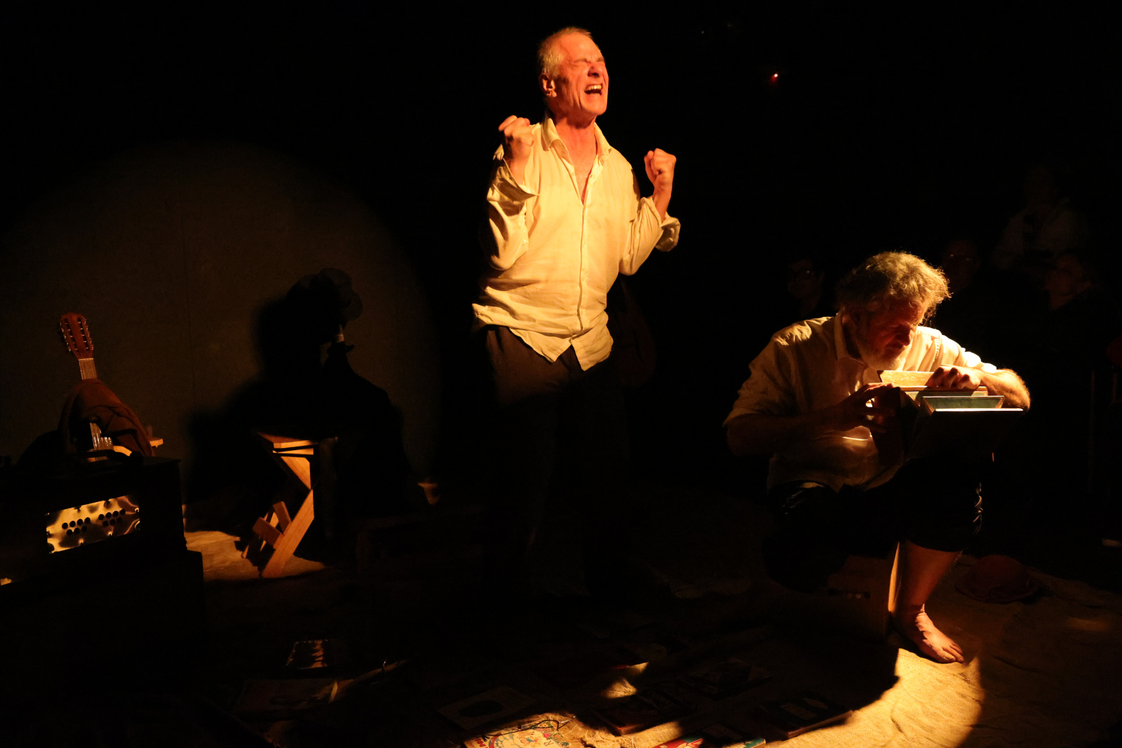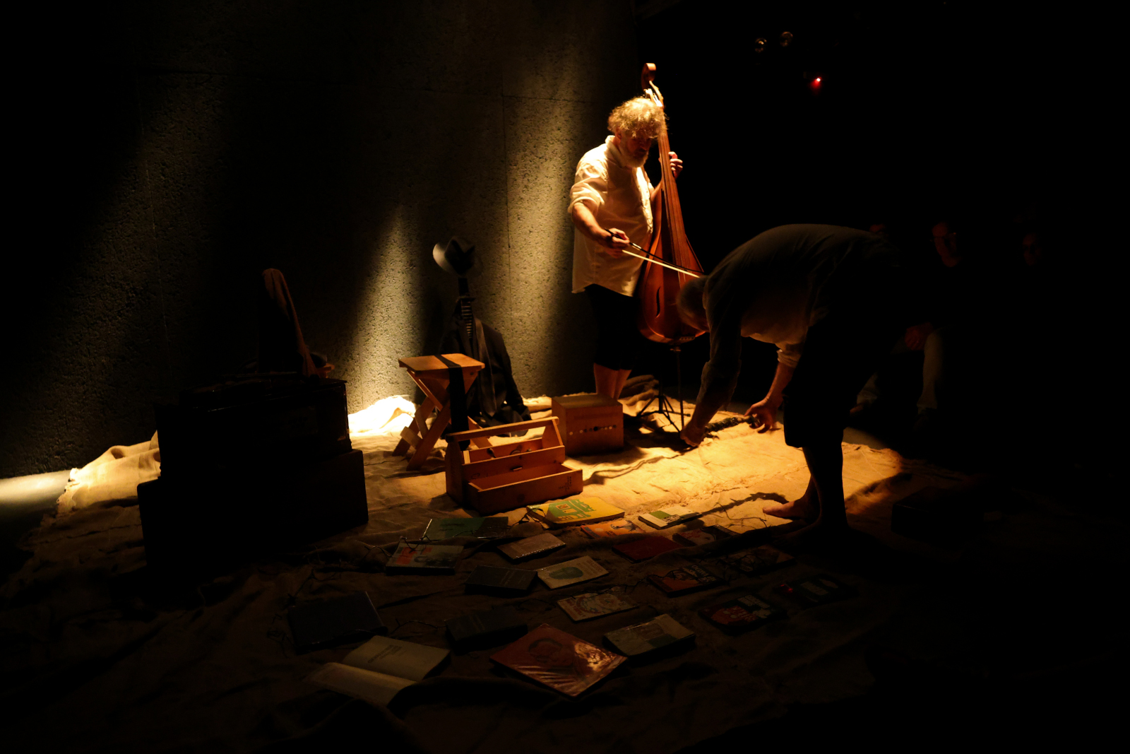 Alexandre Rosa surge como parceiro de cena, não como ilustrador sonoro. Sua música, multi-instrumental, não descreve; condensa. Motivos mínimos abrem corredores de memória; texturas discretas alteram o eixo da recepção; uma entrada ou uma suspensão instauram fora de campo musical que amplia espaço e afeto sem competir com a palavra. Palavra e som compartilham a mesma economia poética: dizer menos para fazer ver mais.