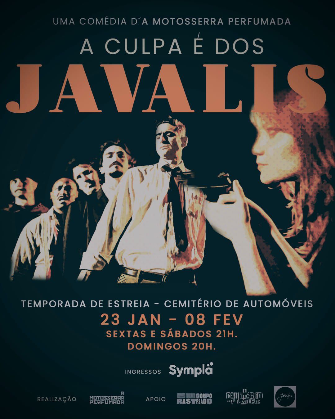 A Culpa é dos Javalis não propõe saída nem conciliação. Não oferece pedagogia nem redenção. Sua força está em manter o impasse em cena — e fazer disso um motor de comédia. A espera, o não-lugar, o passado irrecuperável e o futuro que não chega criam uma arquitetura simples e eficaz para expor homens sem chão, presos a performances ocas, tentando sustentar discursos que já não encontram respaldo no mundo.