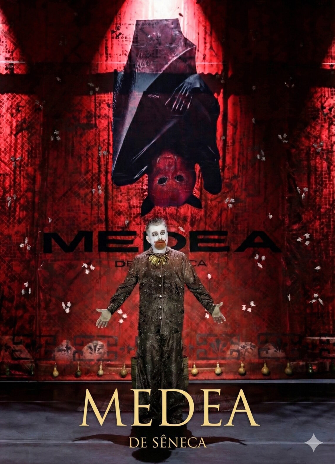 Esse gesto carrega uma denúncia: na tragédia — e no mundo que a tragédia revela — crianças podem ser reduzidas a propriedade, instrumento, linhagem, vingança. Ao transformar os filhos em “coisas” de tecido, penduradas e armazenadas, a encenação não suaviza o horror; expõe a coisificação. A violência não é naturalizada; é formalizada. E formalizar, aqui, não é embelezar: é mostrar como a máquina social consegue transformar vida em objeto.