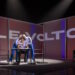 No grande palco do Teatro Anchieta, a cenografia organiza um círculo amplo e, dentro dele, um outro espaço ligeiramente elevado. A sensação é a de instâncias: como se houvesse um lugar “de fora”, um lugar “de dentro” e um lugar “acima”, onde o acontecimento não se organiza como vida cotidiana, mas como rito e julgamento. Essa arquitetura reforça o regime de exposição pública. O palco se comporta como arena de tribunal.